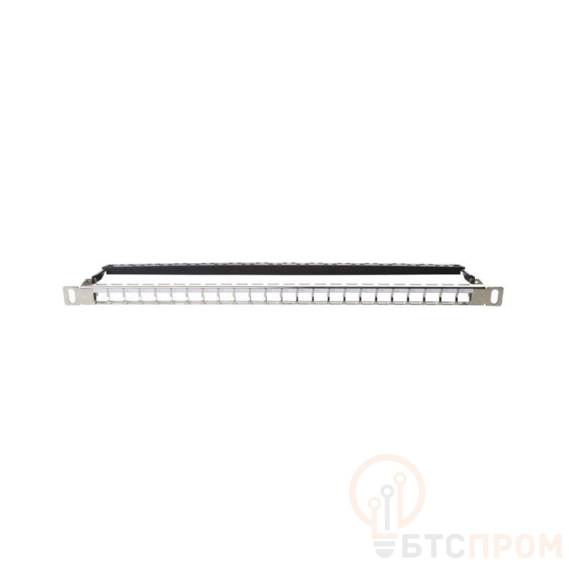 Наборная коммутационная панель 19" высотой 1/2 U с 24 гнездами под установку экранированных и неэкранированных модулей Keystone 8Р8С. Применяется для организации коммутационных полей в коммутационных узлах СКС. Модули Keystone приобретаются отдельно.