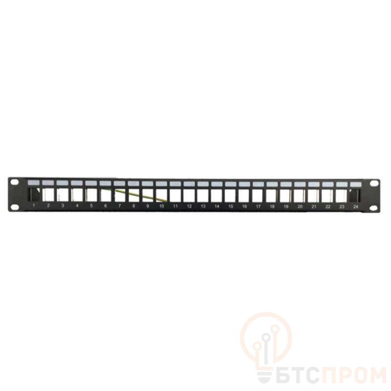 Наборная коммутационная панель 19" 1 U с 24 гнездами под установку экранированных и неэкранированных модулей keystone 8Р8С. Применяется для организации коммутационных полей в коммутационных узлах СКС. Модули Keystone приобретаются отдельно.