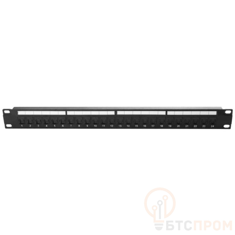 Наборная коммутационная панель 19" 1 U с 24 гнездами под установку экранированных и неэкранированных модулей Keystone 8Р8С. Применяется для организации коммутационных полей в коммутационных узлах СКС. Посадочные гнезда снабжены защитными крышками для предохранения от попадания пыли и загрязнений на контактную группу модулей Keystone.