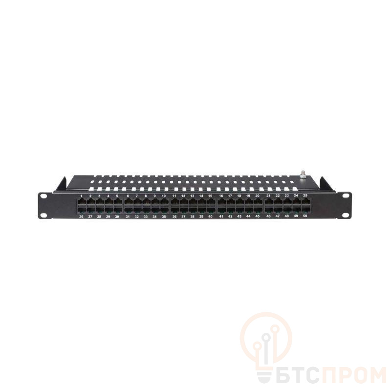 Коммутационная панель 1 U на 50 портов RJ45 со схемой расшивки USOC. Применяется для 2- и 4-проводной телефонии.