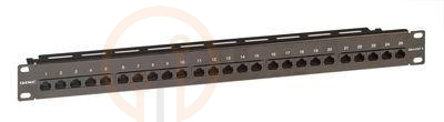 Коммутационная панель категории 3 имеет моноблочную конструкцию, высотой 1U. Количество портов - 25. С тыльной стороны располагаются разъёмы разъемы LSA типа для инсталляции кабелей и площадка для организации кабелей.