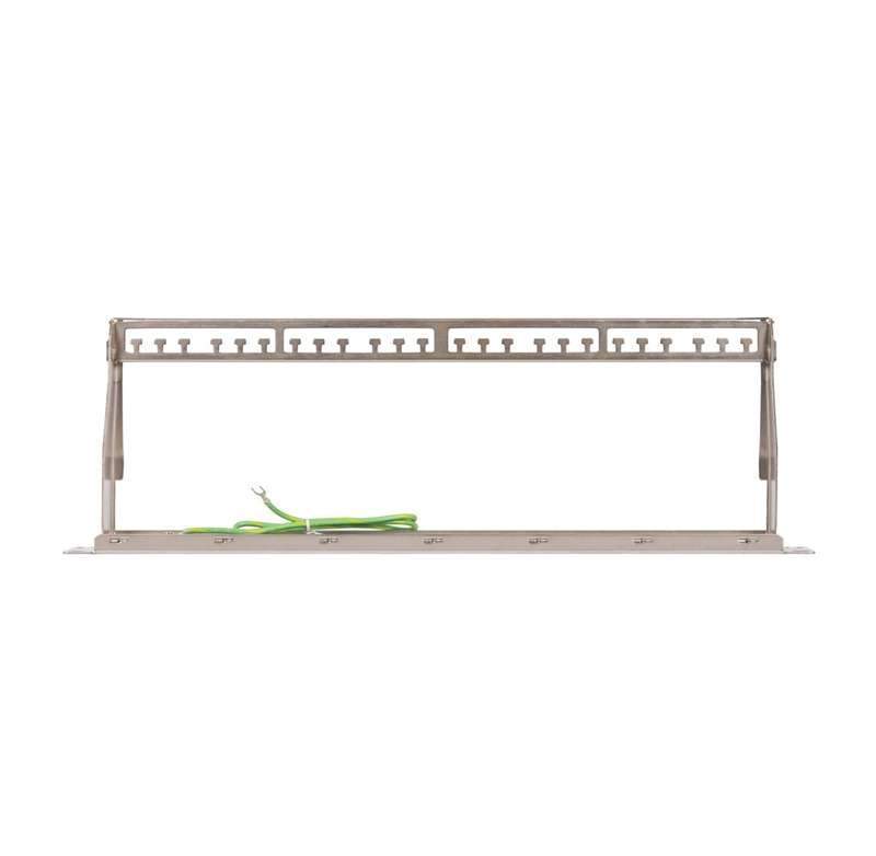 Коммутационные панели (патч-панели) предназначены для монтажа кабелей в различных подсистемах СКС и подключения отдельных составляющих сети друг к другу при помощи коммутационных шнуров. Наборная коммутационная панель NMC-RP24-BLANK-HU-MT имеет 24 гнезда под модули формата Keystone при высоте всего 0,5U. Такое решение идеально, когда необходимо обеспечить высокую плотность портов (например, в дата-центрах) или для расширения сети в ограниченном пространстве шкафа. Модульная конструкция чрезвычайно удобна при монтаже и, при необходимости, позволяет гибко сочетать разъемы разных типов и категорий на одном конструктиве. Все порты панели пронумерованы, также имеются дополнительные маркировочные площадки. Патч-панель выполнена из 1,5 мм стали и подходит как для экранированных, так и неэкранированных модулей. Для лучшего экранирования от электромагнитных помех и улучшения связи с неокрашенными направляющими шкафа, стальной корпус панели гальванизирован никелем. В комплекты патч-панелей входят съемные органайзеры для разводки входящих кабелей.