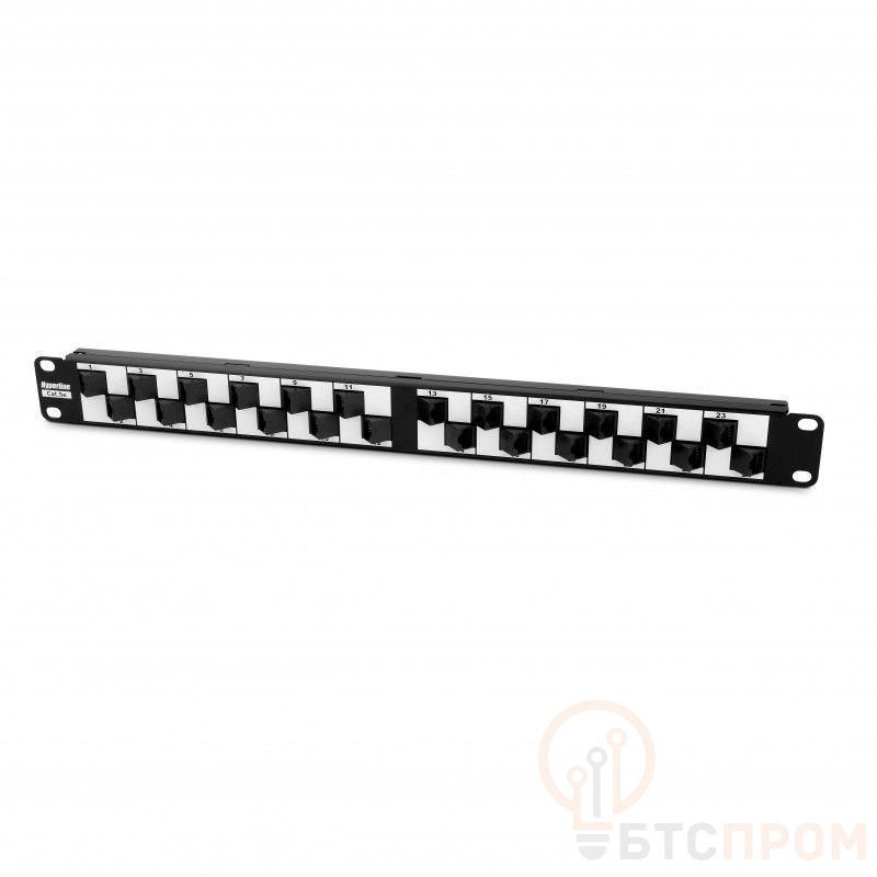 Патч-панель 19дюйм 1U кат.5E 24 портов RJ45 Dual IDC PP2A-19-24S-8P8C-C5E-110 с угловыми портами Hyperline 44391