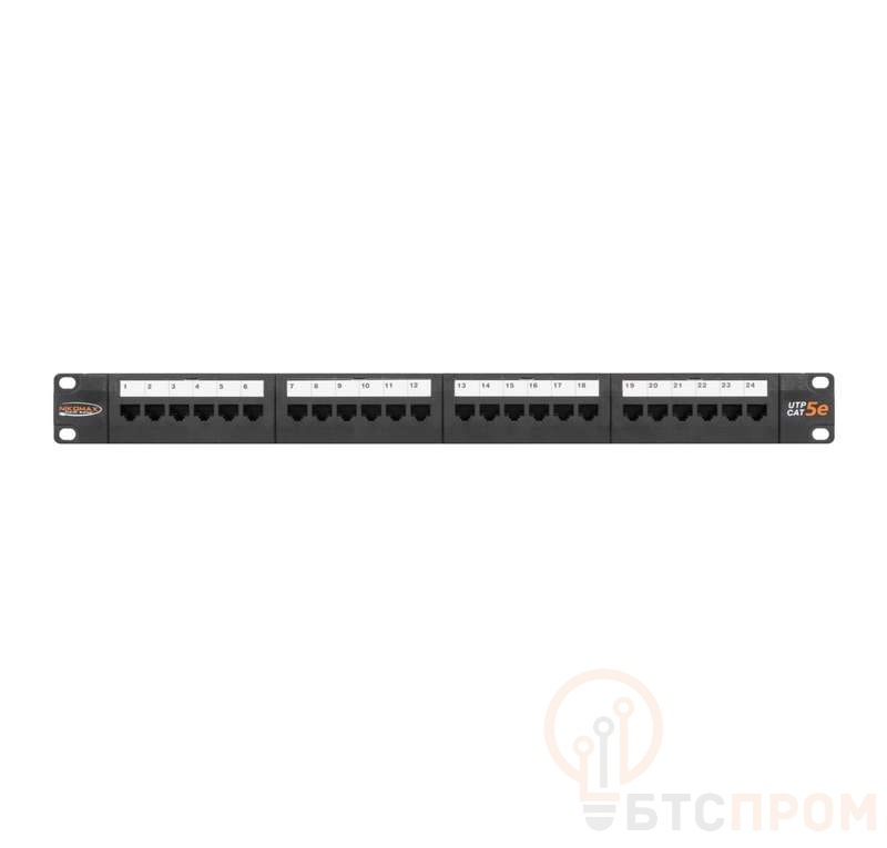 Патч-панель 19дюйм 1U кат.5E (класс D) неэкранир. 24 порта 100МГц RJ45 (8P8C) 110/KRONE T568A/B с органайзером черн. NIKOMAX NMC-RP24UD2-1U-BK
