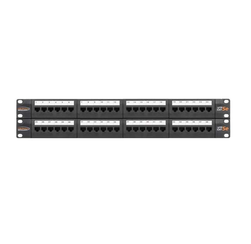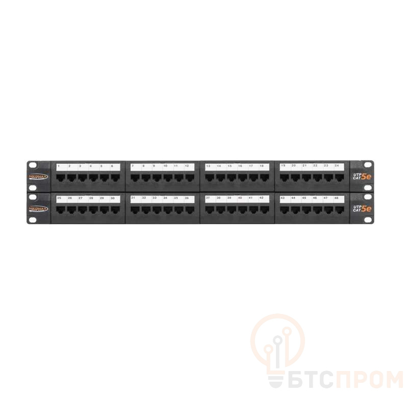 Патч-панель 19дюйм 2U кат.5E (класс D) неэкранир. 48 портов 100МГц RJ45 (8P8C) 110/KRONE T568A/B с органайзерами черн. NIKOMAX NMC-RP48UD2-2U-BK