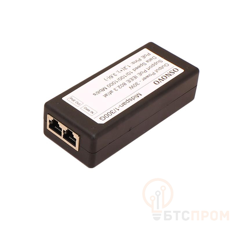 Инжектор PoE Midspan-1/300G от OSNOVO — это компактное и надежное решение для организации подачи питания через Ethernet-кабель к сетевым устройствам. Модель 13337 оснащена одним гигабитным портом (10/100/1000 Мбит/с) и поддерживает стандарты 802.3af/at, что позволяет передавать данные и питание (до 30 Вт) по одному кабелю витой пары.