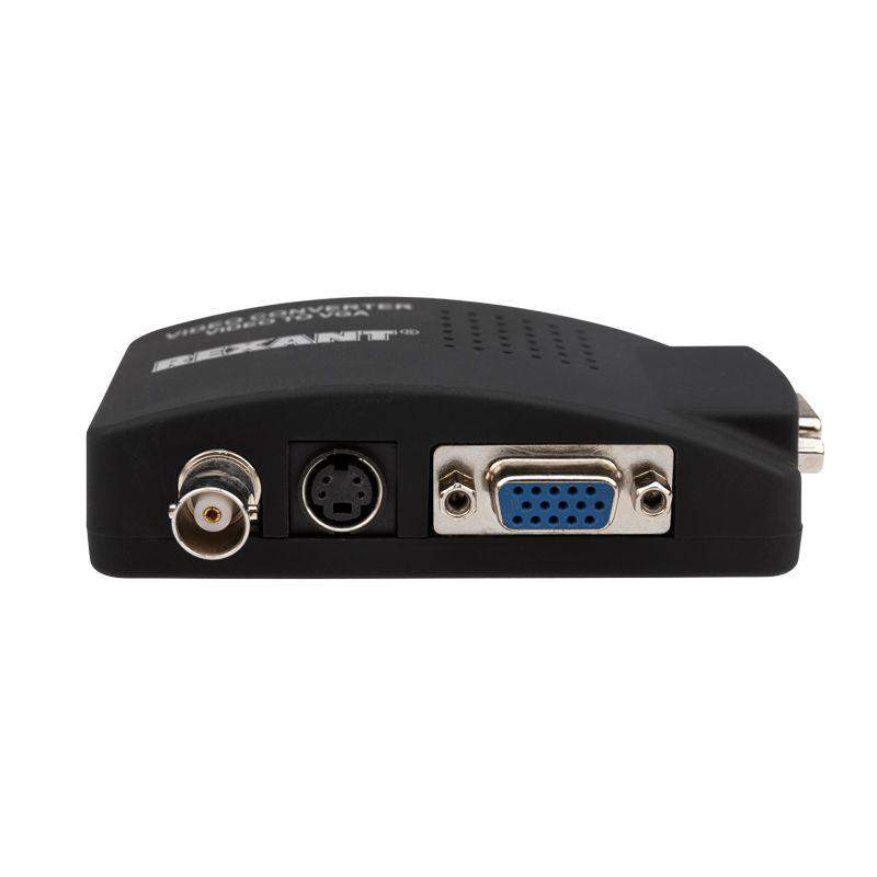 Конвертер BNC + S-video на VGA REхANT позволяет пользователям конвертировать видеосигнал BNC и S-video в сигнал VGA. Это дает возможность использовать стандартный монитор с выходом VGA / SVGA для просмотра видеосигнала BNC или S-video. Это идеальное решение для устройств вывода BNC видеосигналов, таких как камеры слежения, DVR наблюдения и видеопроцессоров. Конвертер питается от сети, через блок питания ( поставляется в комплекте с изделием). Вы можете легко переключаться между источниками видео сигнала (BNC, S-video, VGA) с помощью кнопки, не отсоединяя кабель от конвертера. Это позволит вам подключить к одному монитору сразу два устройства, что очень удобно ведь вам не нужно будет каждый раз переставлять штекеры. Так же конвертер имеет функцию Eхtra Strong 3D делает изображение более насыщенным и чистым. Характеристики Входные разъемы: BNC, S-video, VGA Выходные разъемы: VGA Поддерживаемые разрешения: (800 х 600, 1024 х 768, 1280 х 1024, 1366 х 768, 1440 х 900, 1600 х 900, 1600 х 1200, 1680 х 1050, 1920 х 1080, 1920 х 1200) Поддерживаемые форматы: 4:3 и 16:9 В комплекте с устройством поставляются все необходимые провода для подключения ( кабель подключения к сети, кабель RCA , кабель VGA , кабель S-video).
