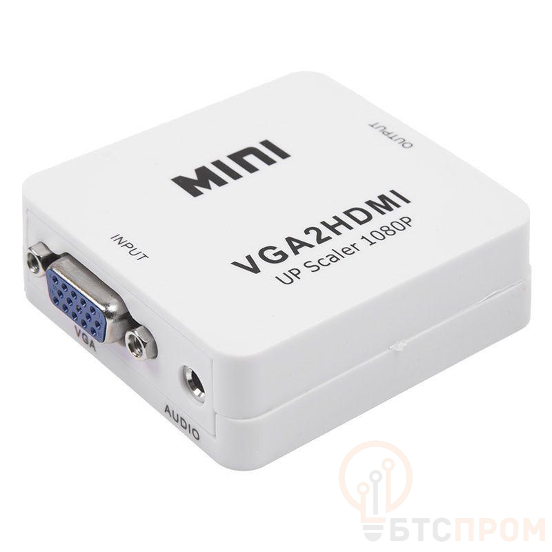 Активный мини конвертер преобразует видео- и аудиосигнал с разъема VGA+3,5мм аудио для разъема HDMI в максимально допустимом формате Full HD 1080p. Необходим в том случае, когда в новом мониторе или телевизоре не предусмотрен привычный интерфейс VGA, а на технике для передачи видео (компьютер, ноутбук или DVD проигрыватель) отсутствует HDMI разъем. Прибор прост в использовании и не требует дополнительных настроек. Поддерживает HDMI 1.3 и совместим с HDCP. Подключается к сети при помощи miniUSB (5В) кабеля, который поставляется в комплекте. Конвертер поддерживает большое количество видеоразрешений, что позволяет не беспокоиться о том, подойдет ли данный прибор для новой ЖК-панели. Поддерживаемые форматы PC: 1920х1080 (60Hz), 1280х1024 (60Hz), 1280х720 (60Hz), 1024х768 (60Hz), 800х600 (60Hz), 640х480 (60Hz). Поддерживаемые форматы HDTV: 480i/576i/480p/576p/720p/1080i/1080р. Входные разъемы – VGA и 3.5 стерео jack аудио. Выходной разъем: HDMI A. Полоса пропускания: 225MHz или 2.25 Gpbs. Размер: 60х55х20 мм.