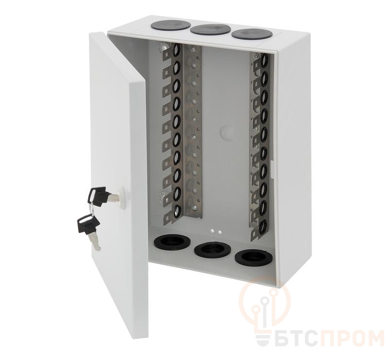 Бокс настенный распределительный на 10 плинтов (до 100 пар) с кронштейнами пластик. с замком 273х214х108мм сер. NIKOMAX NMC-WBPL10-PK
