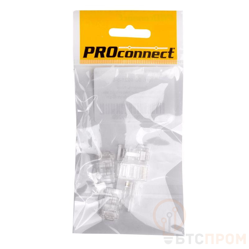 Джек RJ-45 8P8C CAT 5e PROCONNECT предназначен для соединения телекоммуникационного оборудования: компьютеры, офисные АТС, сетевые коммутаторы, концентраторы, коммутационные панели, маршрутизаторы, патч-панели, сетевые карты, а также другого оборудования, имеющего гнездо разъема 8P8C. Джек RJ-45 8P8C (англ. Registered jack) размещают на конце компьютерных или телефонных кабелей для соединения с розеткой, хабом, свитчем, сервером, модемом, роутером или другим компьютером. Штекер изготовлен из прозрачного качественного пластика и имеет 8 посадочных мест и 8 ножей-контактов. На контакты (ножи) нанесен слой технического золота для безупречной пропускной способности разъема. Для опрессовки разъема на кабеле необходим специальный обжимной инструмент.