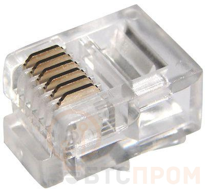 Разъем телефонный RJ-12(6P6C), UTP, CAT 3. Предназначен для соединения телефонной аппаратуры двух-, четырех- или шестижильным кабелем к телефонной линии, а также другого оборудования, имеющего гнездо разъема 6P6C. Размещается на конце телефонных кабелей для соединения с розеткой такого типа. Штекер изготовлен из прозрачного качественного пластика, имеет 6 посадочных мест и 6 ножей-контактов, которые покрыты слоем технического золота 3 мкм для повышения пропускной способности разъема. Фиксация разъема на кабеле производится специальным обжимным инструментом. При изготовлении продукции использованы надежные материалы, обеспечивающие высокий уровень передачи данных, долгий срок службы, а также гарантию работоспособности товара.