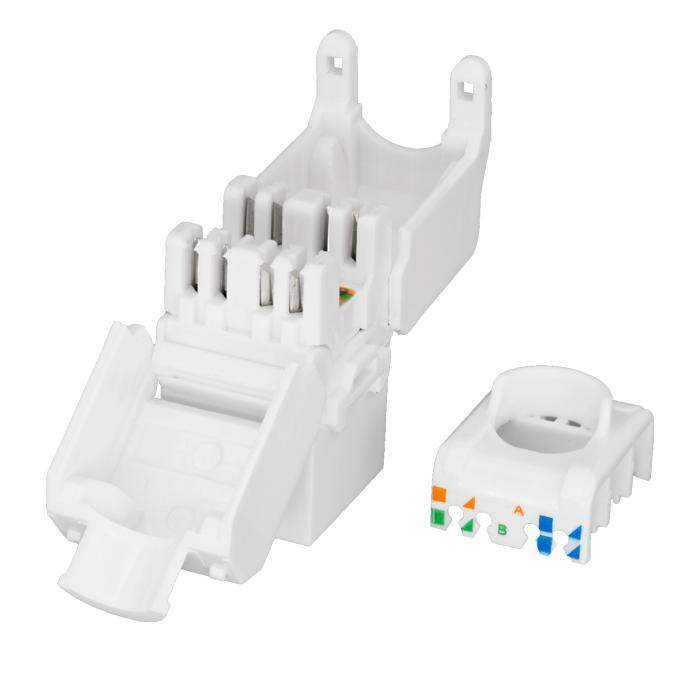 Коммутационные модули (модуль-вставки) Keystone Jack предназначены для установки в модульные патч-панели, в корпуса настенных розеток и для установки в модульные вставки типа Mosaic. С помощью коммутационных модулей организуется подключение коммуникационного оборудования и рабочих станций к информационной сети. Неэкранированный модуль Keystone 180 ° категории 6А производства SUPRLAN имеет классическую конструкцию, контакты IDC совместимы с одножильными проводниками сечением 22-26 AWG, разводка проводников - согласно стандарта T568 А и B. Подключаемый кабель легко монтируется с помощью инструмента 110/Krone типа. Электрические характеристики соответствуют требованиям стандартов.