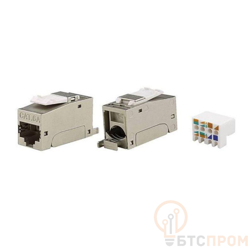 Экранированный модуль Keystone категории 6А для установки в наборные коммутационные панели или в абонентские коробки на рабочем месте. Совместим с кабелями категорий 6 и 5е. Заземление осуществляется только со стороны коммутационной панели в шкафу коммутационного узла.