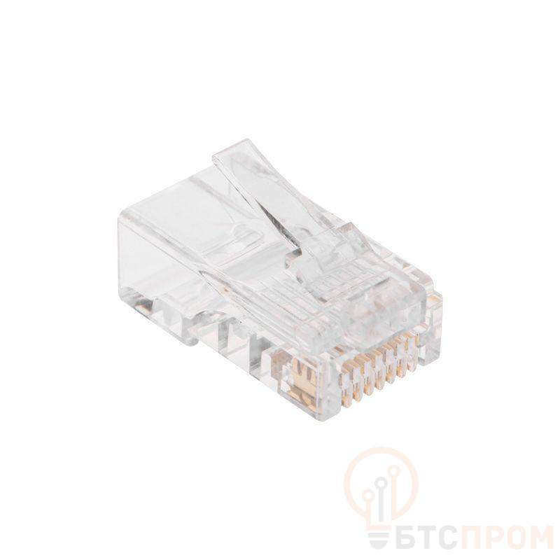 Сквозной разъем RJ-45 (8P8C) REXANT, под витую пару, U/UTP, категория 5e. Предназначен для соединения телекоммуникационного оборудования: компьютеров, офисных АТС, сетевых коммутаторов, концентраторов, коммутационных панелей, маршрутизаторов, патч-панелей, сетевых карт, а также другого оборудования, имеющего гнездо 8P8C. Штекер изготовлен из прозрачного качественного пластика. Имеет 8 посадочных мест и 8 ножей-контактов, которые покрыты слоем технического золота 3 мкм для повышения пропускной способности разъема. При изготовлении продукции используются надежные материалы, обеспечивающие высокий уровень передачи данных, долгий срок службы, а также гарантию работоспособности товара. Фиксация разъема на кабеле производится специальным обжимным инструментом. Сквозные отверстия упрощают и ускоряют монтаж, минимизируя ошибки, возникающие при подключении. Технические характеристики: Исполнение: registered jack Тип разъема: RJ45 8(8) Категория: 5Е Способ присоединения: обжимной Подходит для многопроволочных проводников: да Экран: нет Слой технического золота: 3 мкм Количество контактов: 8