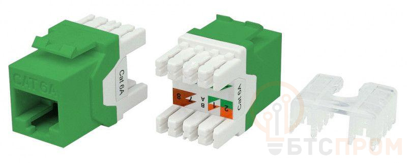 Вставка Keystone Jack RJ45 (8P8C) кат.6A (10G) 180град. KJ8-8P8C-C6A-180-GN зел. Hyperline 432646 фото в каталоге от BTSprom.by