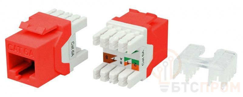 Вставка Keystone Jack RJ45 (8P8C) кат.6A (10G) 180град. KJ8-8P8C-C6A-180-RD красн. Hyperline 432649 фото в каталоге от BTSprom.by