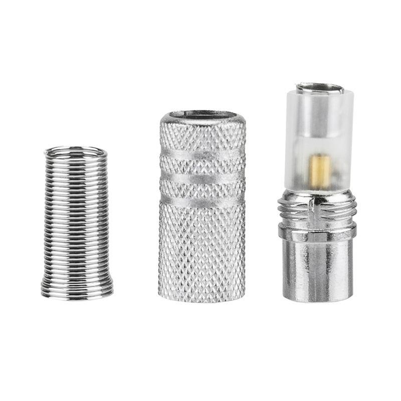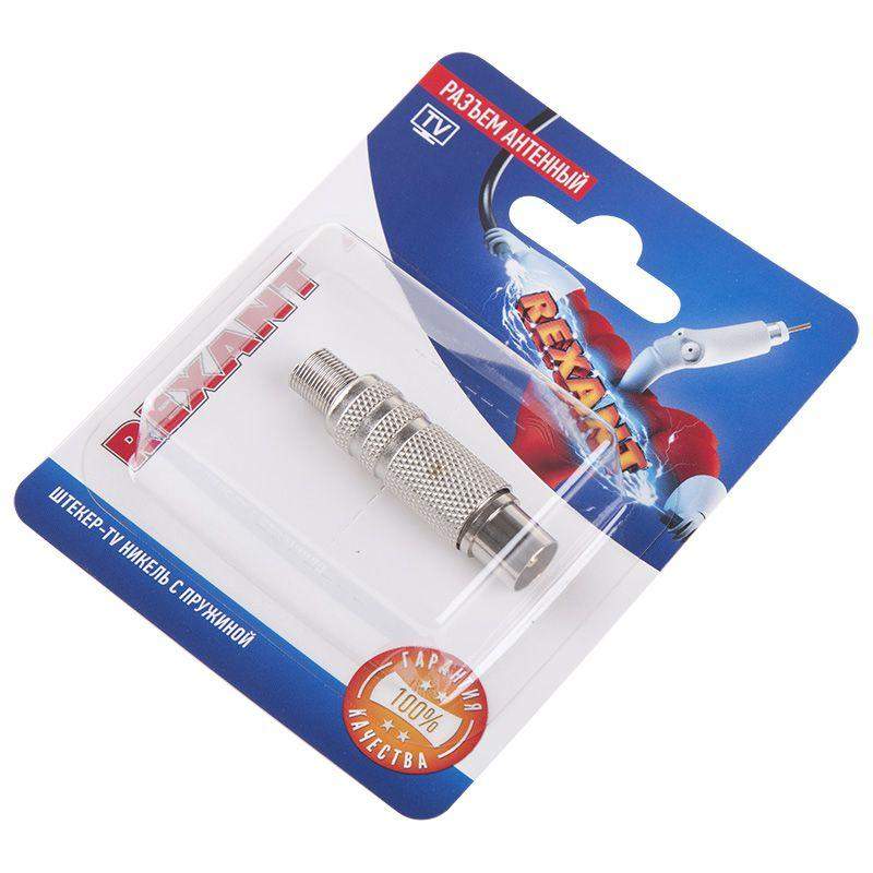Никелированный TV-разъем штекер REXANT с пружиной предназначен для подключения эфирного, спутникового и кабельного телевидения с помощью радиочастотного кабеля. Разъем монтируется на телевизионный кабель и передает идущий по кабелю сигнал на ТВ устройства. Установка провода в разъеме производится с помощью винтового зажима, что значительно экономит время на монтаж. Корпус разъема и контакты изготовлены из никелированного медного сплава, обеспечивающие надежный и долговечный контакт. Устройство оснащено специальным пластмассовым пружинным амортизатором кабеля, который позволяет кабелю гнуться только с безопасным радиусом изгиба.
