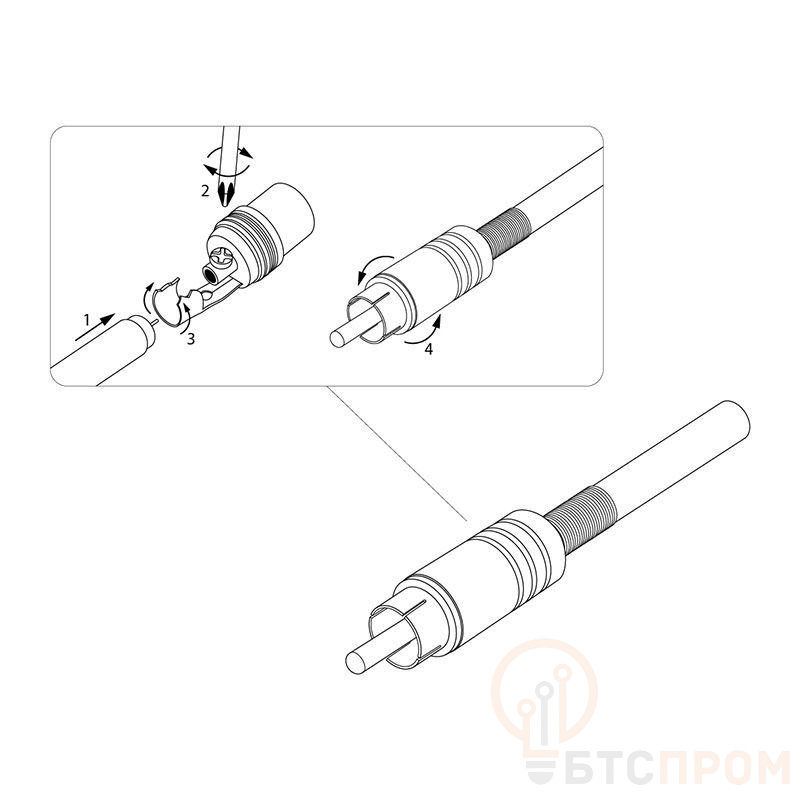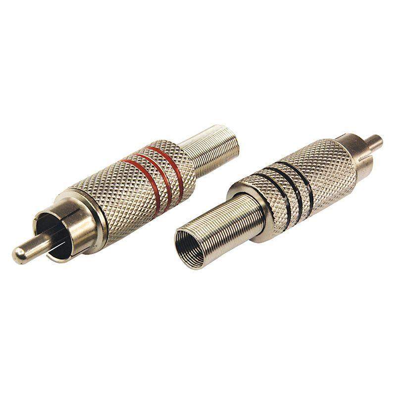 Разъем штекер RCA предназначен для соединения кабелей с видео- и аудиоаппаратурой. Применяется для передачи монофонического аудиосигнала или видеосигнала через кабель на профессиональные звуковые карты (для линейных входов и выходов), DVD-плееры, видеомагнитофоны, VHS-видеокамеры и т.д. Установка провода в разъеме производится с помощью винтового зажима центрального контакта (центральная жила - под винт, оплетка - обжимается), что значительно экономит время монтажа. Корпус разъема и контакты изготовлены из никелированного металла, что обеспечивает надежный и долговечный контакт. Разъем оснащен специальным металлическим пружинным амортизатором кабеля, позволяющим кабелю гнуться с безопасным радиусом изгиба. Для передачи стереозвука используется два тюльпана с черной и красной цветовой меткой, которые позволяют идентифицировать левый или правый канал.