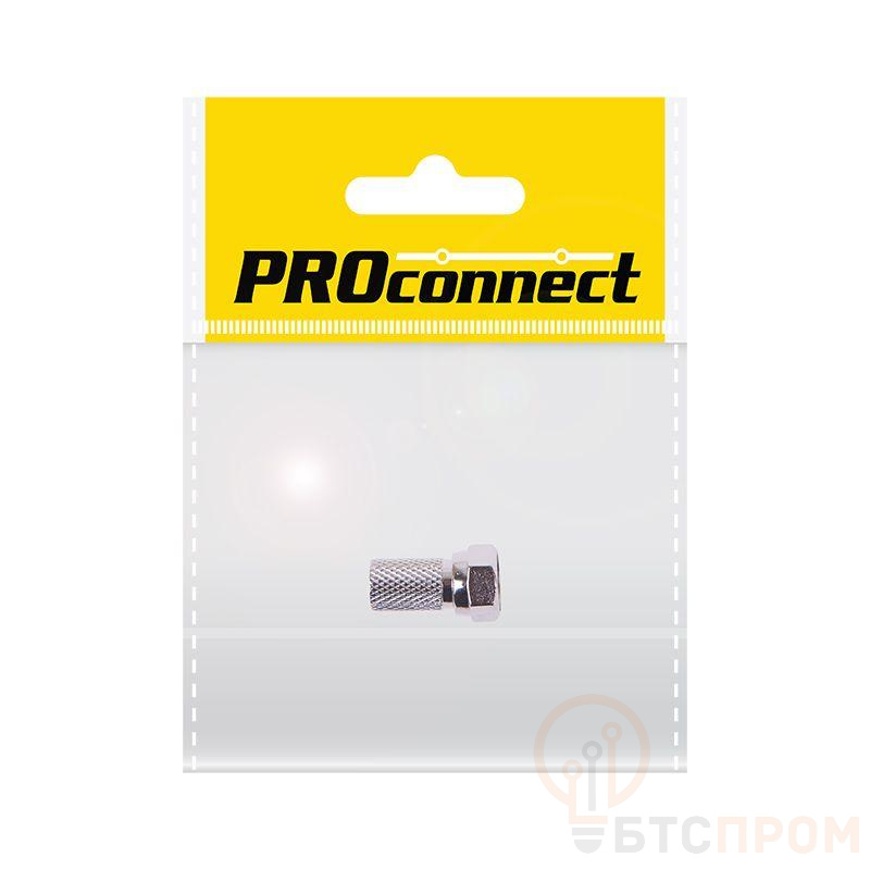 F-разъем для SAT PROconnect используется для обеспечения стойкого соединения коаксиального кабеля волновым сопротивлением 75 Ом с телевизионным и видеооборудованием, таким как ресиверы, телевизоры, видеоаппаратура и т.д. F-штекер выступает в роли своеобразного экрана за счет накручивания на оплетку кабеля для выполнения роли электрического контакта. Подходит для кабелей типа RG-6, и других коаксиальных кабелей (SAT-50, SAT-703, DG-113) имеющих наружный диаметр около 6,8 мм. Для установки разъема необходимо накрутить его на кабель, предварительно зачистив контакты. Монтаж разъема осуществляется быстро, так как не требует пайки контактов и использования специальных инструментов. Разъем не имеет непосредственного штекера, поэтому данную роль выполняет центральная жила кабеля, что позволяет избежать дополнительных потерь сигнала. F-коннектор изготовлен из никелированного цинка и оснащен резиновым уплотнителем, который защищает контактные соединения от попадания влаги.