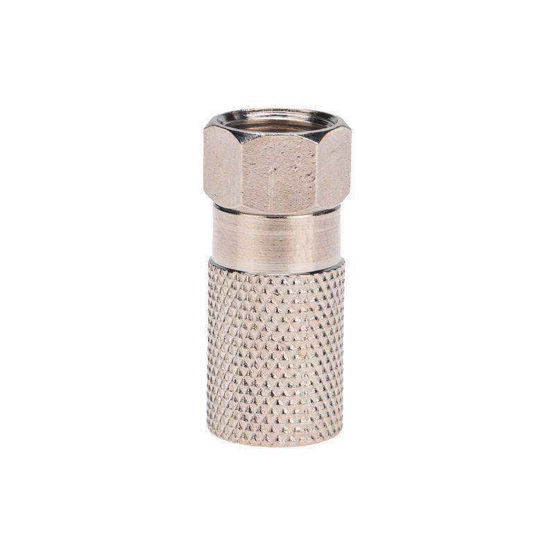 F-разъем RG-11 PROconnect– необходимый компонент, используемый при построении сети кабельного телевидения. Позволяет соединить магистральный коаксиальный кабель волновым сопротивлением 75 Ом с распределительными или оконечными устройствами, такими как усилителями, головными станциями и т.д. Выполнен из никелированного цинка. Для установки разъема необходимо накрутить его на кабель, предварительно зачистив контакты. Монтаж осуществляется быстро, так как не требует пайки контактов и использования специальных инструментов. Изделие оснащено специальной вставкой, через которую осуществляется переход с жилы кабеля RG-11 на стандартный размер штекера. Разъем подходит для кабелей типа RG-11, которые способны передавать сигналы на большие расстояния, а также для других коаксиальных кабелей, имеющих наружный диаметр около 10,3 мм.