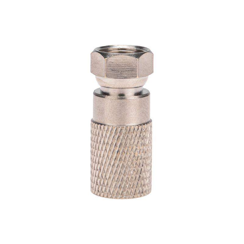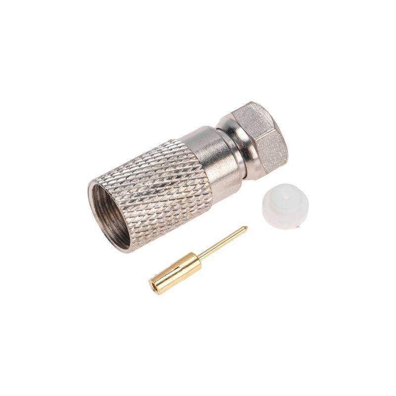 F-разъем RG-11 REXANT представляет собой незаменимый элемент для построения сети кабельного телевидения. С его помощью осуществляется соединение магистрального коаксиального кабеля волновым сопротивлением 75 Ом с распределительными или оконечными устройствами: усилителями, головными станциями и т.д. Изготовлен из никелированного сплава меди (биметалл). Разъем устанавливается на кабель методом накрутки внешнюю оболочку кабеля, после соответствующей зачистки контактов, и не требует применения каких-либо специальных инструментов. Для перехода с жилы кабеля RG-11 на стандартный размер штекера используется специальная вставка (пин). Устройство подходит для кабелей типа RG-11, которые способны передавать сигналы на большие расстояния, а также для других коаксиальных кабелей, имеющих наружный диаметр около 10,3 мм.
