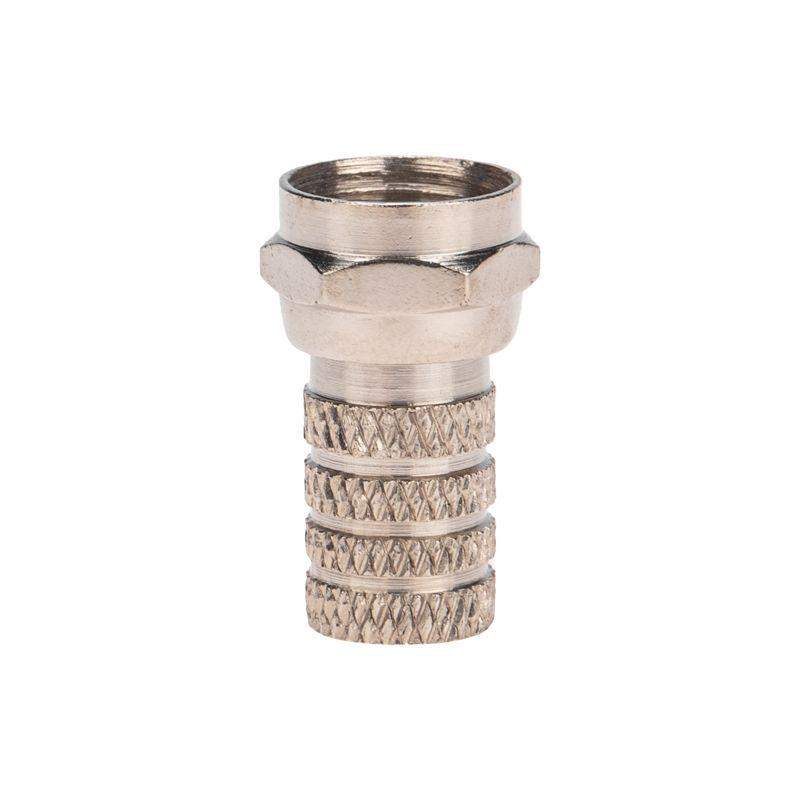 F-разъем RG-58 PROconnect используется для обеспечения стойкого соединения коаксиального кабеля волновым сопротивлением 50 Ом с телевизионным и видеооборудованием, таким как ресиверы, телевизоры, видеоаппаратура и т.д. Подходит для кабелей типа RG-58 и других коаксиальных кабелей, имеющих наружный диаметр около 5 мм. Для установки разъема необходимо накрутить его на кабель, предварительно зачистив контакты. Монтаж разъема осуществляется быстро, так как не требует пайки контактов и использования специальных инструментов. Разъем не имеет непосредственного штекера, поэтому данную роль выполняет центральная жила кабеля, что позволяет избежать дополнительных потерь сигнала. Материал изготовления – никелированный цинк.