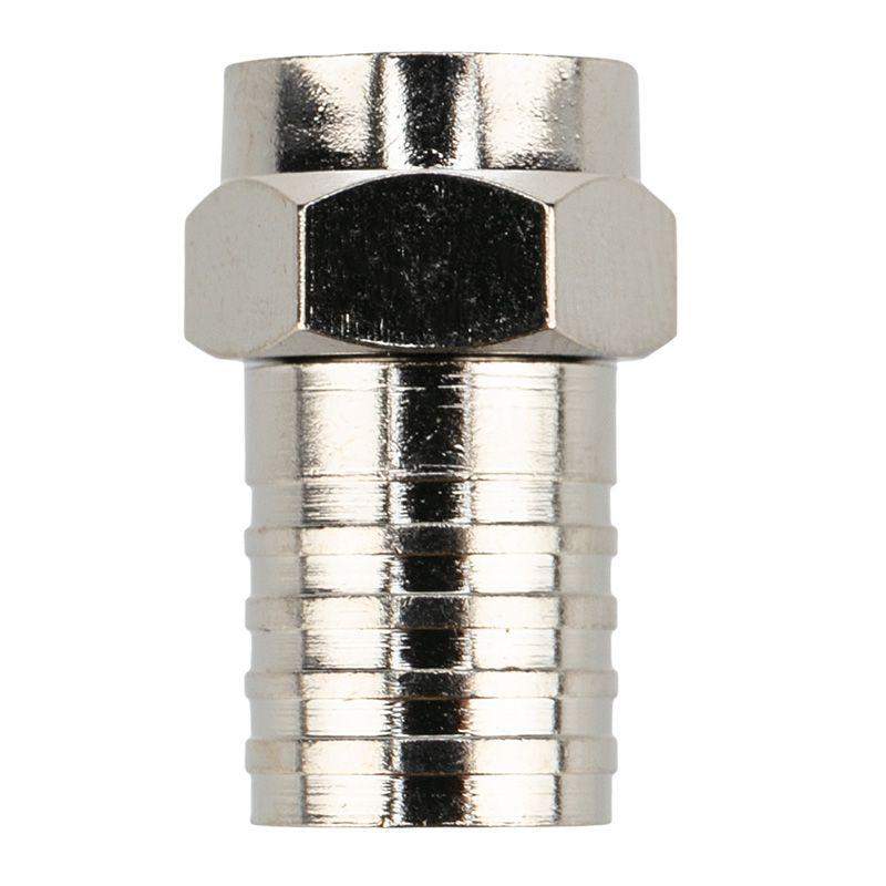 F-разъем RG-6 REXANT соединяет коаксиальный кабель волновым сопротивлением 75 Ом с телевизионным и видеооборудованием, таким как ресиверы, телевизоры, видеоаппаратура и т.д. Разъем изготовлен из латуни. Изделие устанавливается на кабель путем обжатия, при котором втулка равномерно зажимает кабель по окружности. Перед монтажом необходимо зачистить контакты с помощью специального обжимного инструмента. Такой высокочастотный соединитель подходит для кабелей: SAT-50, SAT-703, DG-113, а также для других коаксиальных кабелей, наружный диаметр которых составляет около 6,8 мм.