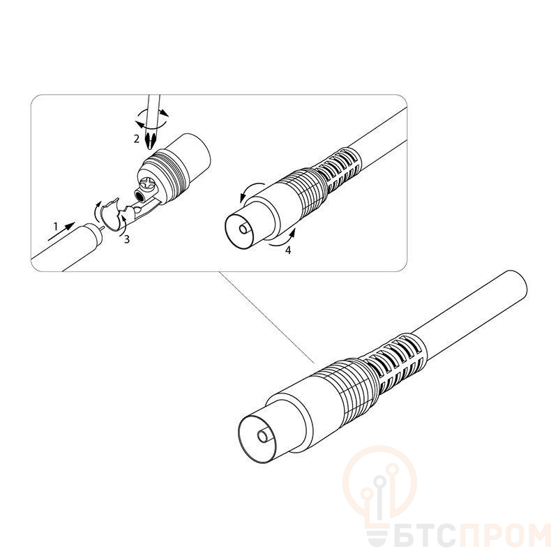 РАЗЪЁМ гнездо TV без пайки Белый REхANT предназначен для подключения эфирного, спутникового и кабельного телевидения с помощью радиочастотного кабеля. Такой разъем монтируется на телевизионный кабель и передает идущий по кабелю сигнал на ТВ устройства. Установка провода в разъеме производится с помощью винтового зажима, что значительно сэкономит время на монтаж. Корпус разъема и контакты изготовлены из никелированного металла, а колпачок из белой пластмассы. Колпачок имеет амортизатор кабеля (в народе именуемый "хвостом"), который позволяет кабелю гнуться только с безопасным радиусом изгиба. Простой монтаж и надёжное соединение обеспечат защиту от помех и внешних воздействий.