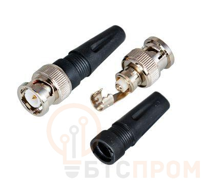 РАЗЪЁМ штекер BNC под винт с колпачком REXANT предназначен для подключения коаксиального кабеля c волновым сопротивлением 50 и 75 Ом, диаметром до 7 мм, к видеокамерам, видеорегистраторам, мониторам и другим радиоэлектронным устройствам. BNC-коннектор (BNC сокр. от Bayonet Neill Concelman) под винт - электрический разъем с байонетной фиксацией закрепляется на кабеле зажимом с помощью винта центрального контакта (центральная жила - под винт, оплетка - обжимается). Этот способ крепления значительно проще и быстрее, чем пайка, но его надежность и качество соединения остаются на неизменно высоком уровне. Пластиковый колпачок защищает соединения и предотвращает кабель от перегиба в месте крепления к разъему. BNC-разъем изготовлен из материалов: корпус - никелированный цинк; центральный контакт - латунь с напылением технического золота; диэлектрик - фторопласт; колпачок - пластик. Использование сплава меди (биметалл) и никелевого покрытия повышает долговечность разъема и позволяет применять в условиях климатических перепадов.