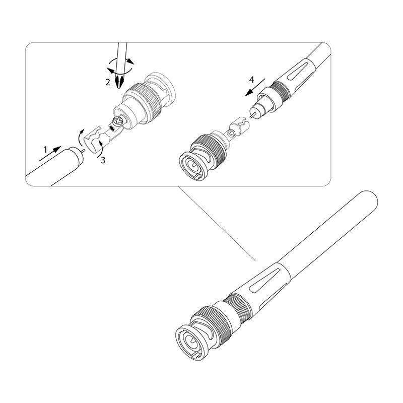 РАЗЪЁМ штекер BNC под винт с колпачком PROconnect предназначен для подключения коаксиального кабеля c волновым сопротивлением 50 и 75 Ом, диаметром до 7 мм, к видеокамерам, видеорегистраторам, мониторам и другим радиоэлектронным устройствам. BNC-коннектор (BNC сокр. от Bayonet Neill Concelman) под винт - электрический разъем с байонетной фиксацией закрепляется на кабеле зажимом с помощью винта центрального контакта (центральная жила - под винт, оплетка - обжимается). Этот способ крепления значительно проще и быстрее, чем пайка, но его надежность и качество соединения остаются на неизменно высоком уровне. Пластиковый колпачок защищает соединения и предотвращает кабель от перегиба в месте крепления к разъему. BNC-разъем изготовлен из материалов: корпус - никелированный цинк; центральный контакт - латунь с напылением технического золота; диэлектрик - фторопласт; колпачок - пластик. Использование сплава меди (биметалл) и никелевого покрытия повышает долговечность разъема и позволяет применять в условиях климатических перепадов.