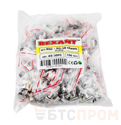 РАЗЪЁМ штекер BNC RG-58 обжим REXANT предназначен для подключения коаксиального кабеля c волновым сопротивлением 50 или 75 Ом к видеокамерам, видеорегистраторам, мониторам и другим радиоэлектронным устройствам. BNC-коннектор (BNC сокр. от Bayonet Neill Concelman) обжимной - электрический разъем с байонетной фиксацией закрепляется на кабеле обжимом с помощью специализированных клещей для коаксиальных кабелей. Такое соединение обеспечит безопасную, качественную и долговечную эксплуатацию видеоаппаратуры. BNC-разъем изготовлен из материалов: корпус - никелированный цинк; центральный контакт - латунь с напылением технического золота; диэлектрик - фторопласт; обжимная втулка - никелированная латунь. Диапазон рабочих температур от -40? до +110?. Использование сплава меди (биметалл) и никелевого покрытия повышает долговечность разъема и позволяет применять в условиях климатических перепадов.