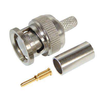 РАЗЪЁМ штекер BNC RG-59 обжим REXANT предназначен для подключения коаксиального кабеля c волновым сопротивлением 50 или 75 Ом к видеокамерам, видеорегистраторам, мониторам и другим радиоэлектронным устройствам. BNC-коннектор (BNC сокр. от Bayonet Neill Concelman) обжимной - электрический разъем с байонетной фиксацией закрепляется на кабеле обжимом с помощью специализированных клещей для коаксиальных кабелей. Такое соединение обеспечит безопасную, качественную и долговечную эксплуатацию видеоаппаратуры. BNC-разъем изготовлен из материалов: корпус - никелированный цинк; центральный контакт - латунь с напылением технического золота; диэлектрик - фторопласт; обжимная втулка - никелированная латунь. Диапазон рабочих температур от -40? до +110?. Использование сплава меди (биметалл) и никелевого покрытия повышает долговечность разъема и позволяет применять в условиях климатических перепадов.