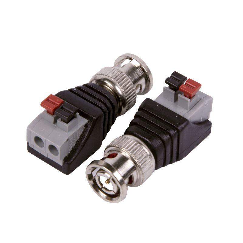 РАЗЪЁМ штекер BNC с быстрозажимной колодкой REXANT предназначен для подключения кабеля к видеокамерам, видеорегистраторам, мониторам и другим радиоэлектронным устройствам. BNC-коннектор (BNC сокр. от Bayonet Neill Concelman) с быстрозажимной колодкой - электрический разъем с байонетной фиксацией закрепляется на кабеле зажимом жил без использования каких-либо инструментов. Этот способ крепления значительно быстрее, чем пайка и обжим, но его надежность и качество соединения остаются на неизменно высоком уровне. BNC-разъем изготовлен из материалов: корпус - никелированный цинк и высокопрочный пластик; центральный контакт - латунь с напылением технического золота; диэлектрик - фторопласт. Диапазон рабочих температур от -40? до +110?. Использование сплава меди (биметалл) и никелевого покрытия повышает долговечность разъема и позволяет применять в условиях климатических перепадов.