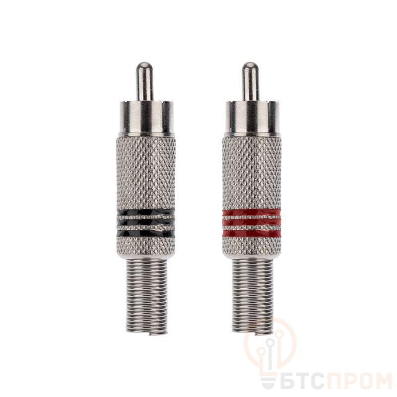 Разъем штекер RCA предназначен для соединения кабелей с видео- и аудиоаппаратурой. Применяется для передачи монофонического аудиосигнала или видеосигнала через кабель на профессиональные звуковые карты (для линейных входов и выходов), DVD-плееры, видеомагнитофоны, VHS-видеокамеры и т.д. Установка провода в разъеме производится с помощью винтового зажима центрального контакта (центральная жила - под винт, оплетка - обжимается), что значительно экономит время монтажа. Корпус разъема и контакты изготовлены из никелированного металла, что обеспечивает надежный и долговечный контакт. Разъем оснащен специальным металлическим пружинным амортизатором кабеля, позволяющим кабелю гнуться с безопасным радиусом изгиба. Для передачи стереозвука используется два тюльпана с черной и красной цветовой меткой, которые позволяют идентифицировать левый или правый канал.