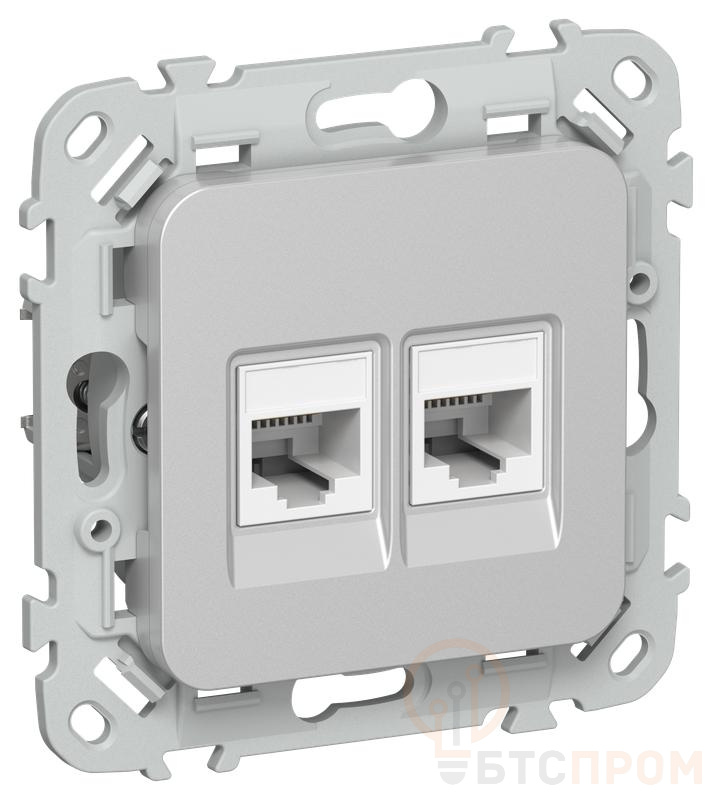 Розетка 2-м СП FLITE РКТ5е/3-2-0-ФлА RJ45/RJ11 кат.5E/3 UTP механизм алюм. IEK FI-KT22-1-K47 фото в каталоге от BTSprom.by