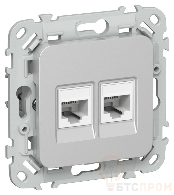 Розетка 2-м СП FLITE РКТ6/3-2-0-ФлА RJ45/RJ11 кат.6/3 UTP механизм алюм. IEK FI-KT22-2-K47 фото в каталоге от BTSprom.by