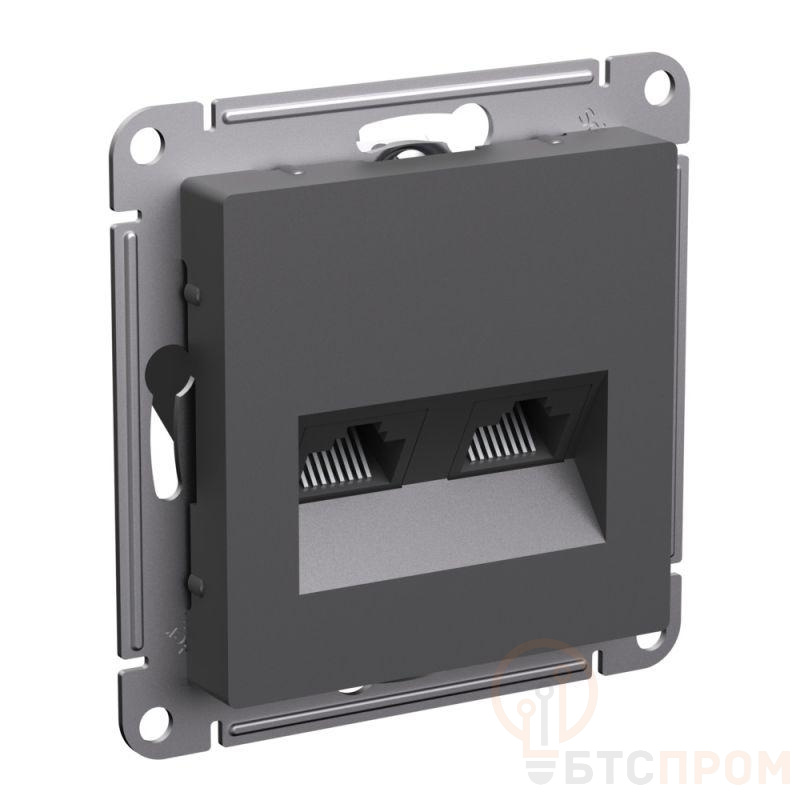 Механизм Systeme Electric (ранее Schneider Electric) серии AtlasDesign в цвете БАЗАЛЬТ двойной розетки компьютерной с разъёмом RJ45 категория 5е предназначен для удобного и быстрого подключения вашего компьютера к локальной вычислительной сети. - Лицевые детали из качественного ABS-пластика, устойчивого к царапинам и УФ-излучению. - Усиленные прямые монтажные лапки для лучшей фиксации механизма в монтажной коробке.