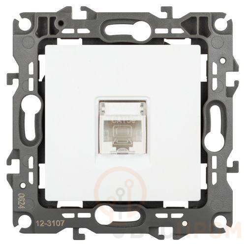 Розетка информационная RJ45 серии Эра 12 скрытой установки механизм цвет белый матовый 12-3107-01М. Сделана из поликарбоната. Монтаж в подрозетник производится и на лапки, и на винты. Рамки приобретаются отдельно.