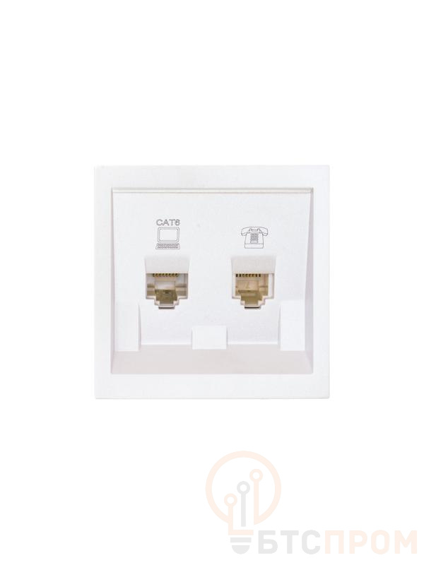 Конструкция включает два независимых порта: 8P8C (RJ45) для подключения компьютера, телевизора или другого сетевого оборудования и 6P4C (RJ11) для подключения телефонного аппарата или факса. Механизм универсален и подходит для офисных помещений, жилых квартир, домов и гостиниц, где требуется компактное и эстетичное решение для проводных коммуникаций.
