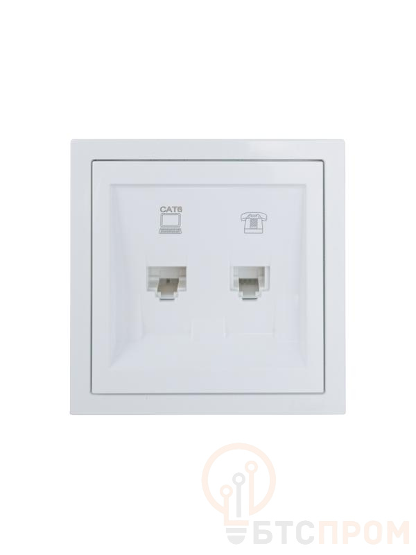 –Розетка компьютер+телефон с модулем Cat 6 СП ZIMA бел. LEZARD 704-0288-144