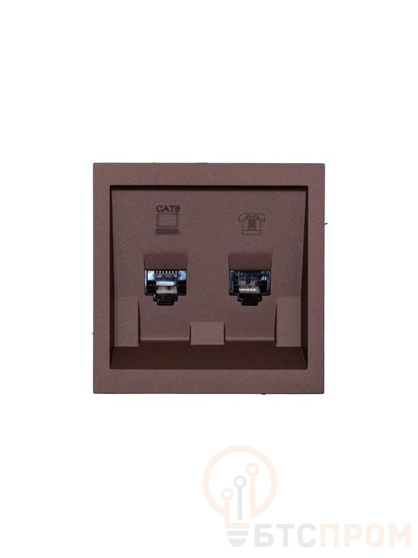 Розетка компьютер+телефон СП ZIMA IP20 с модулем Cat 6 шоколад LEZARD 704-7388-144 фото в каталоге от BTSprom.by