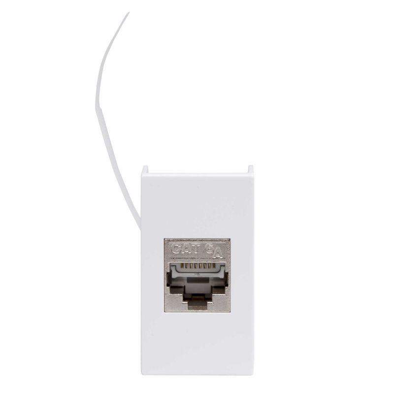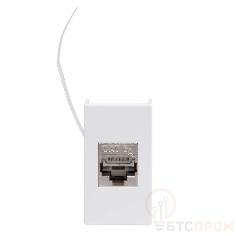 Компьютерная розетка. Назначение: подсоединение кабеля к компьютеру, принтеру и прочей оргтехнике. Характеристики: 8Р8С; комплектуются одномодульным гнездом; для заделки контактов в розетки использовать инструмент типа 110. RJ-45. Категория: 6А. Тип гнезда: Keystone. Производитель гнезда: ДКС Hyperline. Установочный размер: 45х25. Кол-во модулей: 1. Цвет: белый
