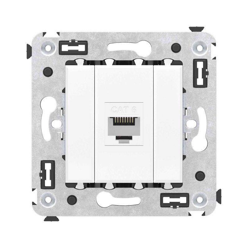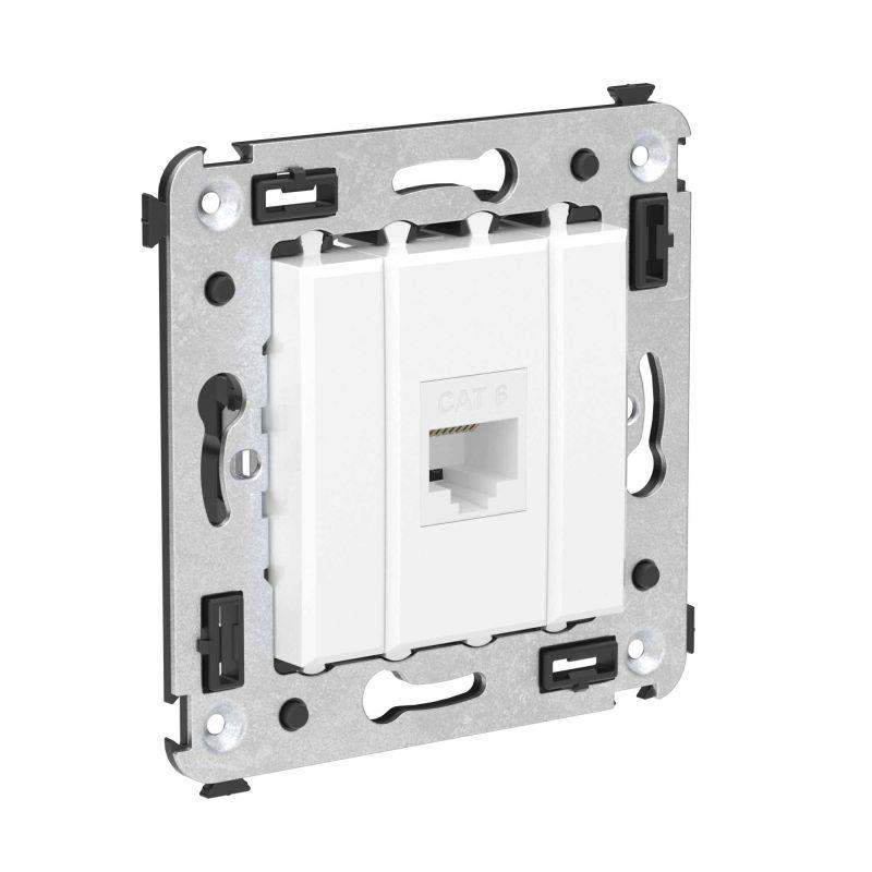 Компьютерная розетка без шторки используется для подключения компьютерной техники и соединения с патч-панелью, предназначена для скрытого монтажа в стену, поставляется в комплекте с суппортом. Розетка RJ-45 категории 6 может использоваться для организации сетей с частотой до 250 МГц и передавать данные на большие расстояния. Материал розетки – металл, термопласт. Пластиковые детали изделия выполнены в цвете "Белое облако" – самом универсальном оттенке из цветовой гаммы ЭУИ "Avanti".