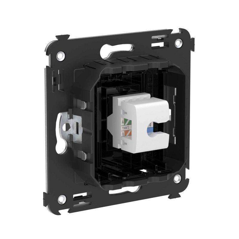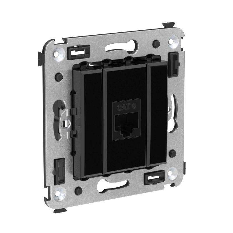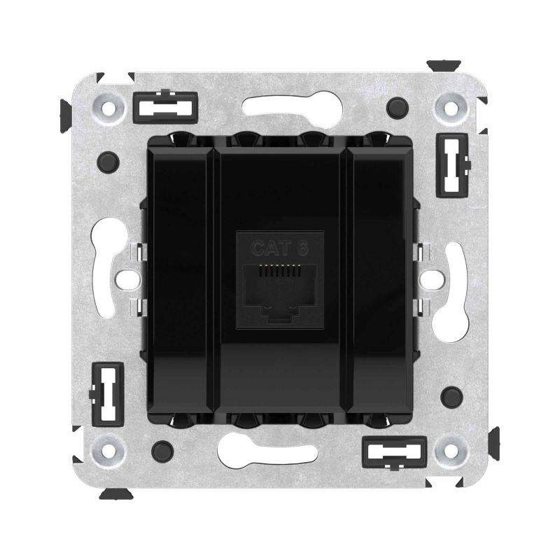 Компьютерная розетка используется для подключения компьютерной техники и соединения с патч-панелью, предназначена для скрытого монтажа в стену, поставляется в комплекте с суппортом. Розетка RJ-45 категории 6 может использоваться для организации сетей с частотой до 250 МГц и передавать данные на большие расстояния. Материал розетки – металл, термопласт. Пластиковые детали изделия выполнены в цвете "Черный квадрат".