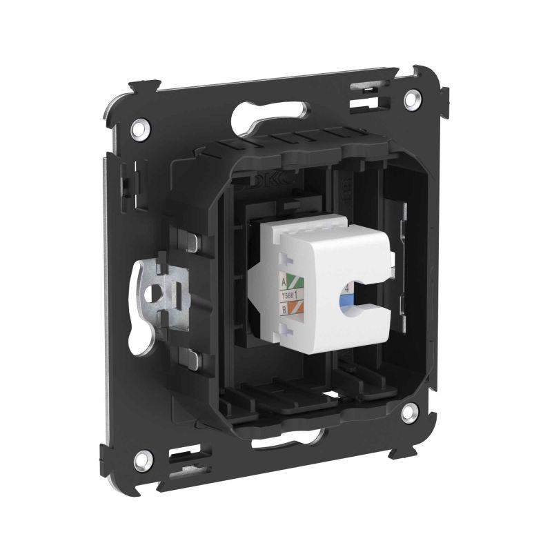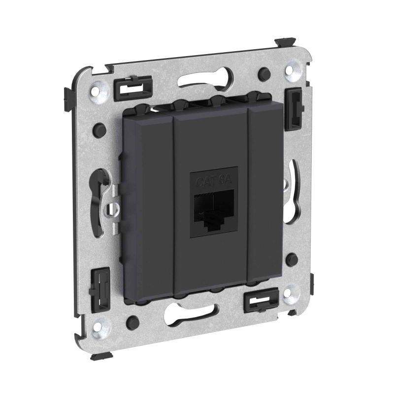 Компьютерная розетка без шторки используется для подключения компьютерной техники и соединения с патч-панелью. Предназначена для скрытого монтажа в стену, поставляется в комплекте с суппортом. Розетка RJ-45 категории 6А может использоваться для организации сетей с частотой до 500 МГц и передавать данные до 10 Гбит/с. Материал розетки – металл, термопласт. Пластиковые детали изделия выполнены в цвете "Черный матовый".