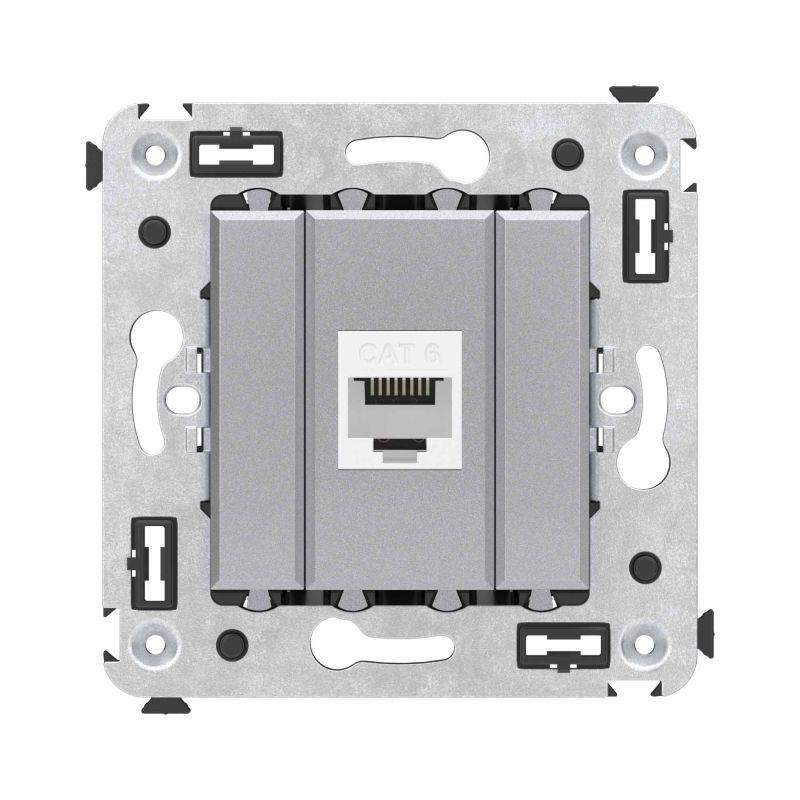 Компьютерная розетка используется для подключения компьютерной техники и соединения с патч-панелью, предназначена для скрытого монтажа в стену, поставляется в комплекте с суппортом. Розетка RJ-45 категории 6 может использоваться для организации сетей с частотой до 250 МГц и передавать данные на большие расстояния. Материал розетки – металл, термопласт. Пластиковые детали изделия выполнены в цвете "Закаленная сталь".