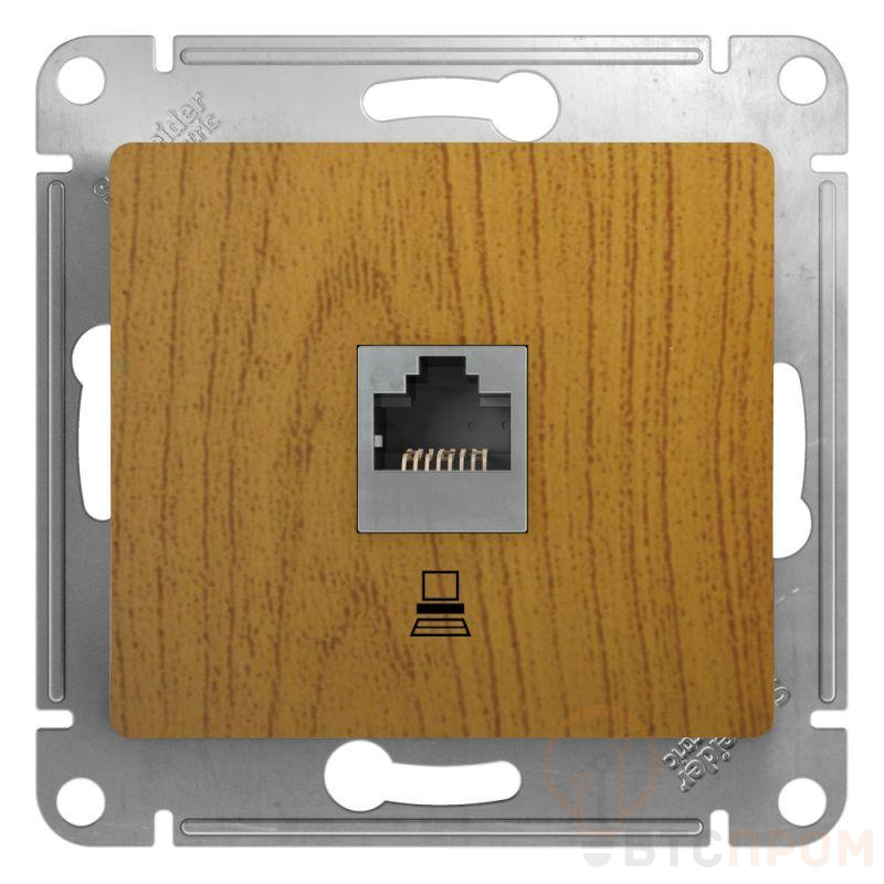 Механизм Systeme Electric (ранее Schneider Electric) серии Glossa (цвет дерево дуб) розетки компьютерной с разъёмом RJ45 категория 5е предназначен для удобного и быстрого подключения вашего компьютера к компьютерной сети. - Выполнен из материала PС+ASA, стойкого к УФ-излучению и появлению царапин.