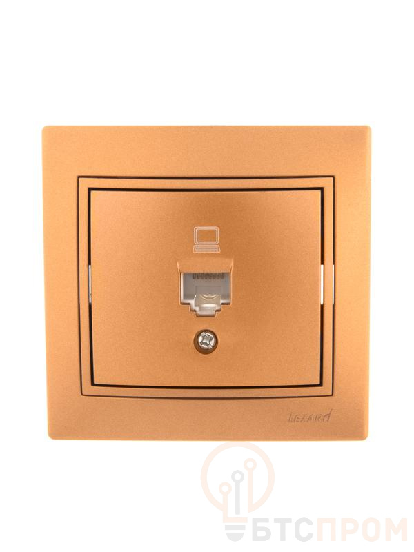 Розетка компьютерная 1-м СП Mira RJ45 зол. метал. LEZARD 701-1313-139 фото в каталоге от BTSprom.by