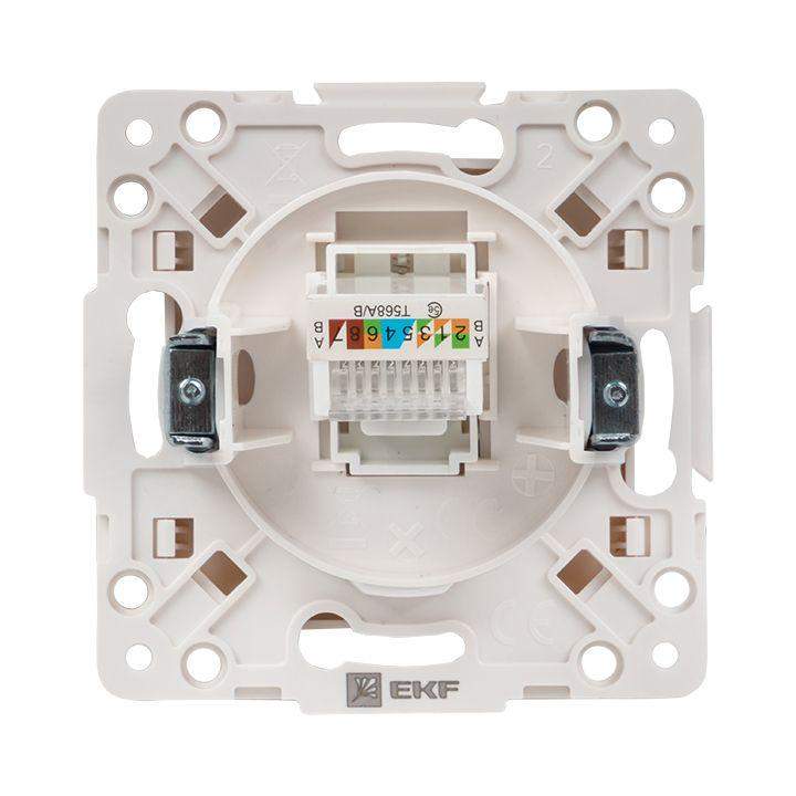 Розетка одноместная RJ45 EKF серии Стокгольм станет отличным решением для стильного помещения при подключении устройств к сети Интернет. Выполнена из поликарбоната, устойчивого к ультрафиолетовому излучению. Изделие необходимо дополнить рамкой.