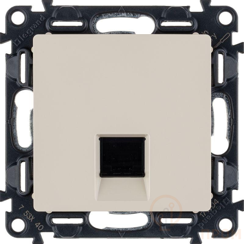 Механизм розетки комп. 1-м Valena Life RJ45 CAT.5E UTP с лицевой панелью сл. кость Leg 753540 – электроустановочный механизм. Представляет собой розетку с одинарным разъемом типа RJ45 8 (8), изготовленную из пластика, с лицевой панелью цвета слоновой кости, скрытой установки, монтируемой под штукатурку.
